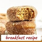 Spiced and covered by a crunchy cinnamon sugar coating, these doughnuts are baked, soft, easy to make and ready to eat in about 1 hour. And less messy than regular fried ones. The perfect Fall and holiday breakfast fare. And weekend brunch.