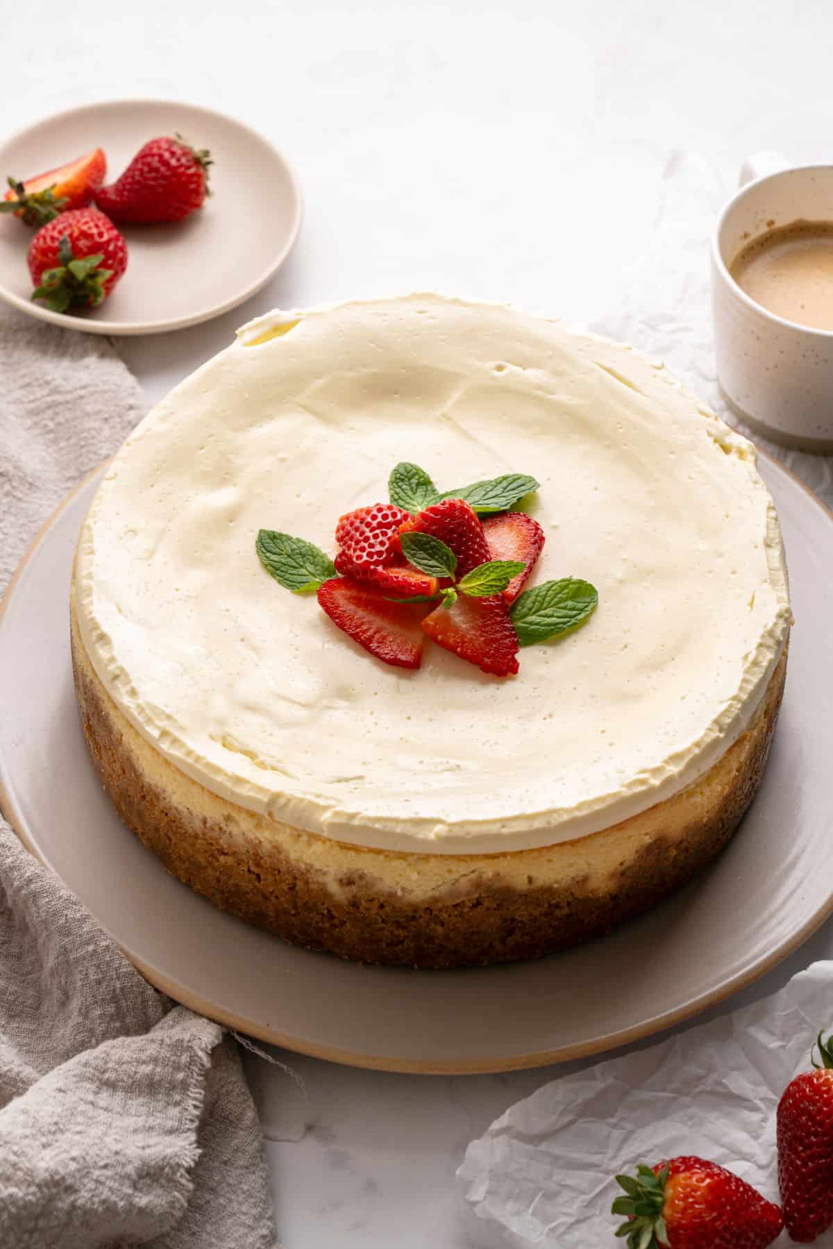 It's a forgiving cheesecake. There's no water bath drama and no complicated techniques, just a few key details that make all the difference between good and great cheesecake.