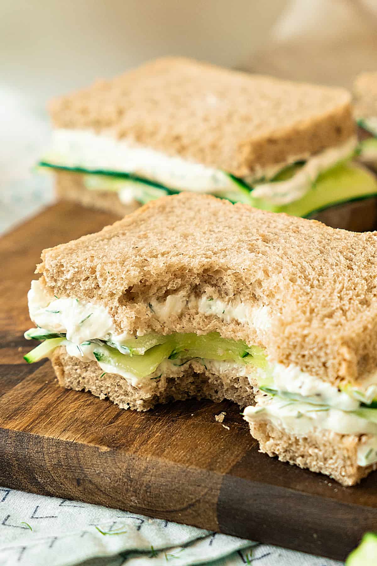 Don't prepare the sandwiches too much in advance. The bread is soft, and it will soften even further with the moisture from the cream cheese and cucumbers. So avoid a messy bite.