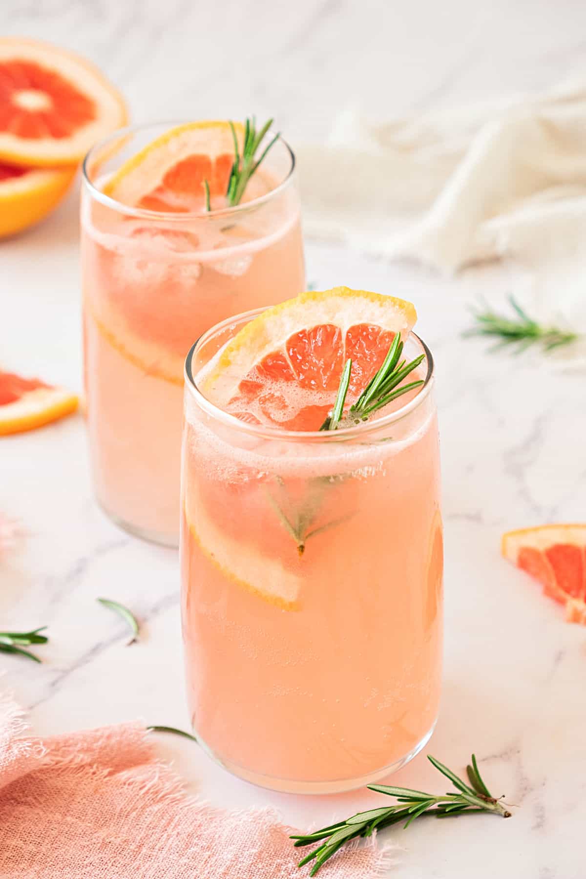 - Garnish with 2 fresh rosemary sprigs and 2 grapefruit slices.