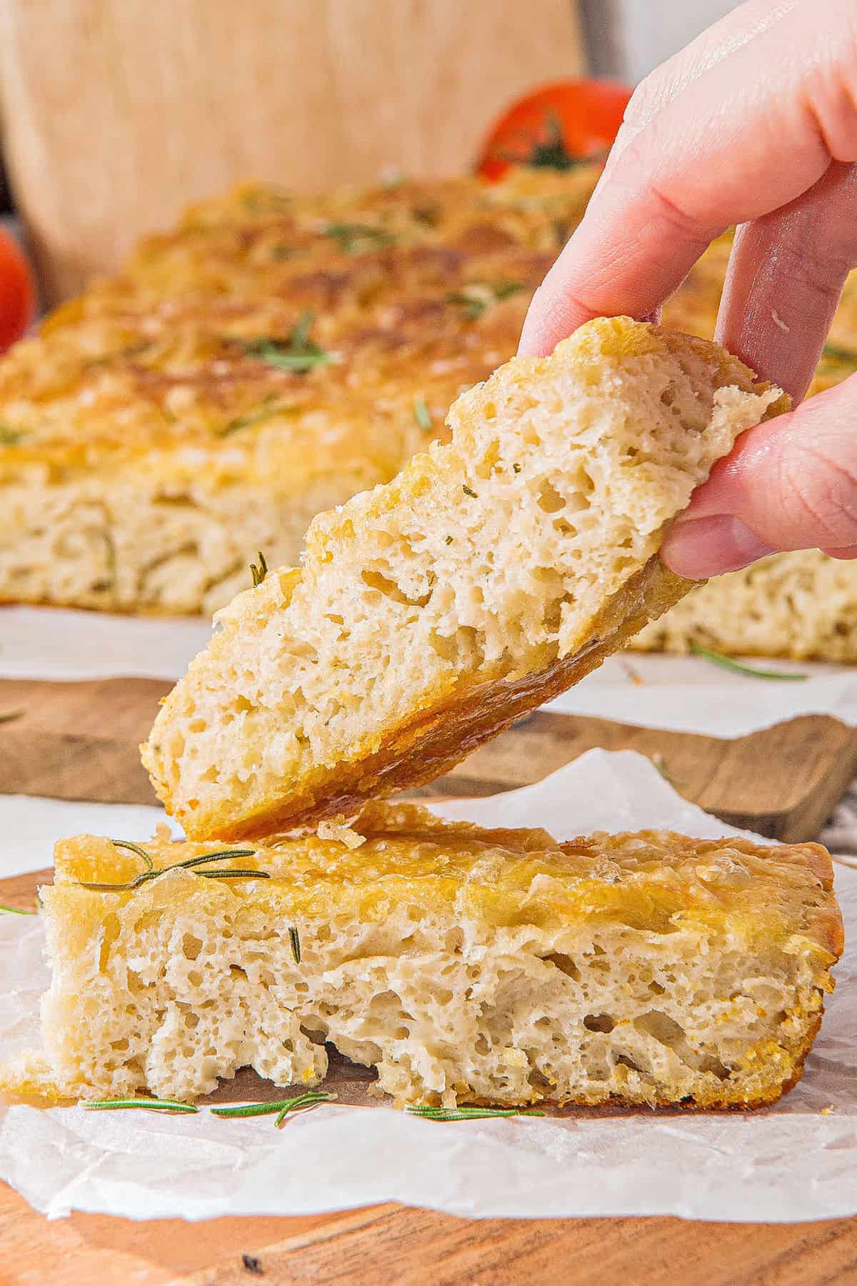 Olive oil is non-negotiable! It's essential for the flavor and texture of the focaccia, especially the top, which will be incredibly crunchy. So use the best extra virgin one you can afford.