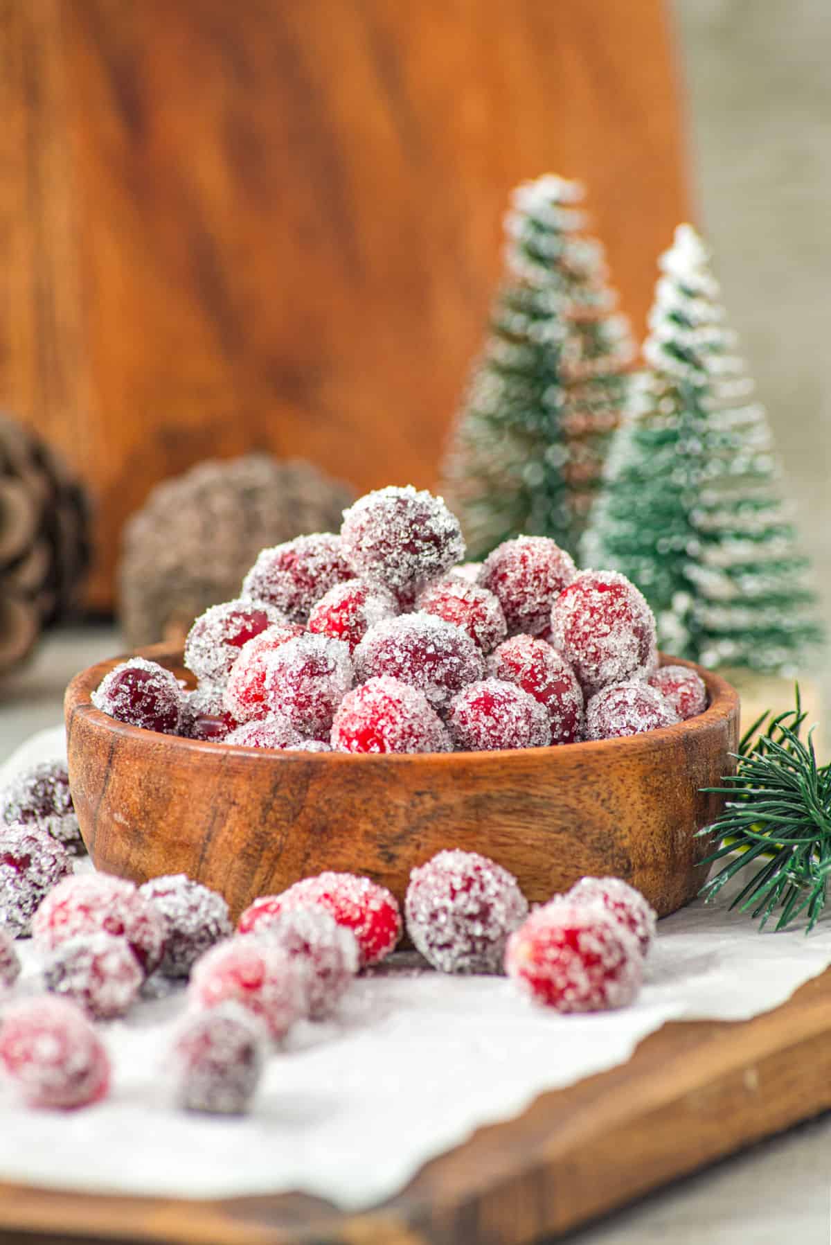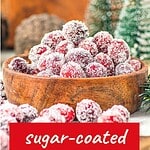 These sugar-coated cranberries pull double duty. They make a fantastic holiday dessert garnish you can pile them onto cakes, cheesecakes, and pies, and are also excellent to scatter them over a holiday cheese board, or float a few in cocktails or mocktails for instant December energy.