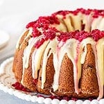 One of the most popular recipes in this blog, with dozens of 5-star reviews, this bundt cake will make you a fan of white chocolate and raspberries! The flavors are present but don't overwhelm each other. The crumb is dense and tender, and the cake lasts for several days. The white chocolate ganache on top makes it scrumptious!